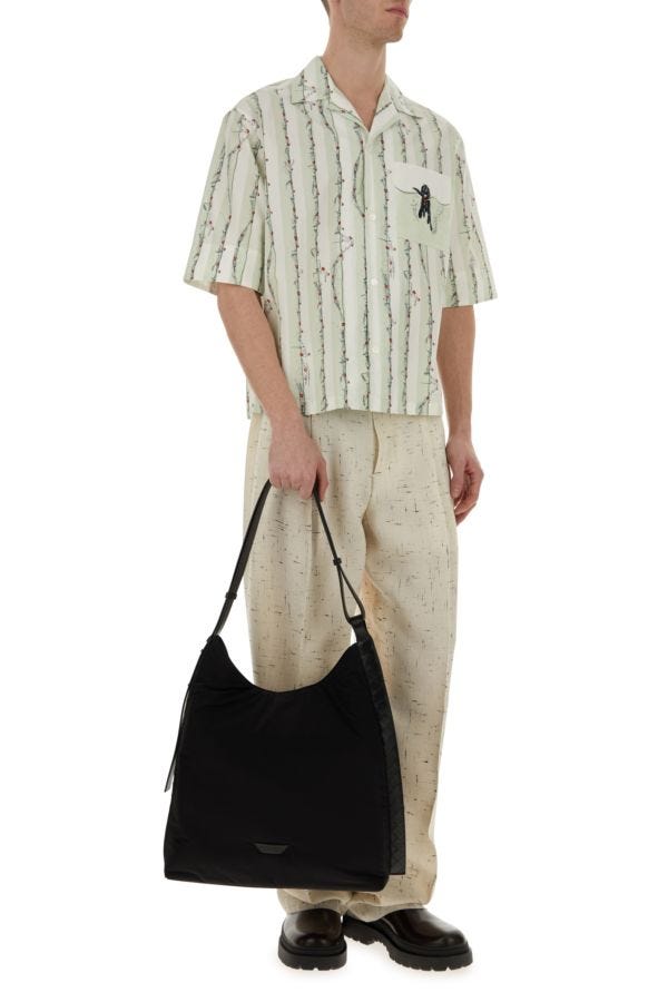 フロントに同系色のロゴ入りラベルが付いたトリミングにイントレチャート