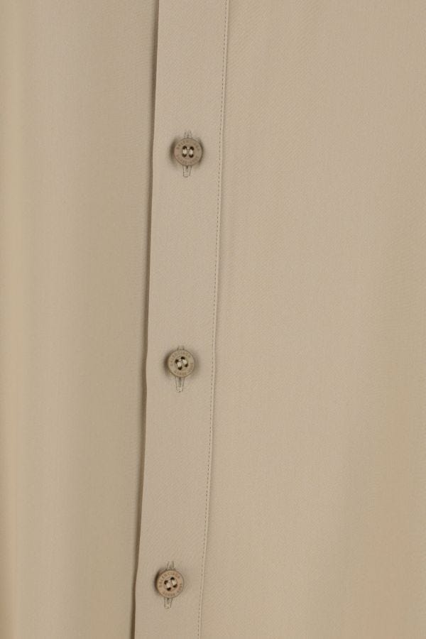 純粋なシルクサテンで作られたオーバーサイズシャツ。首元で結ぶリボン付きのフードが特徴です。