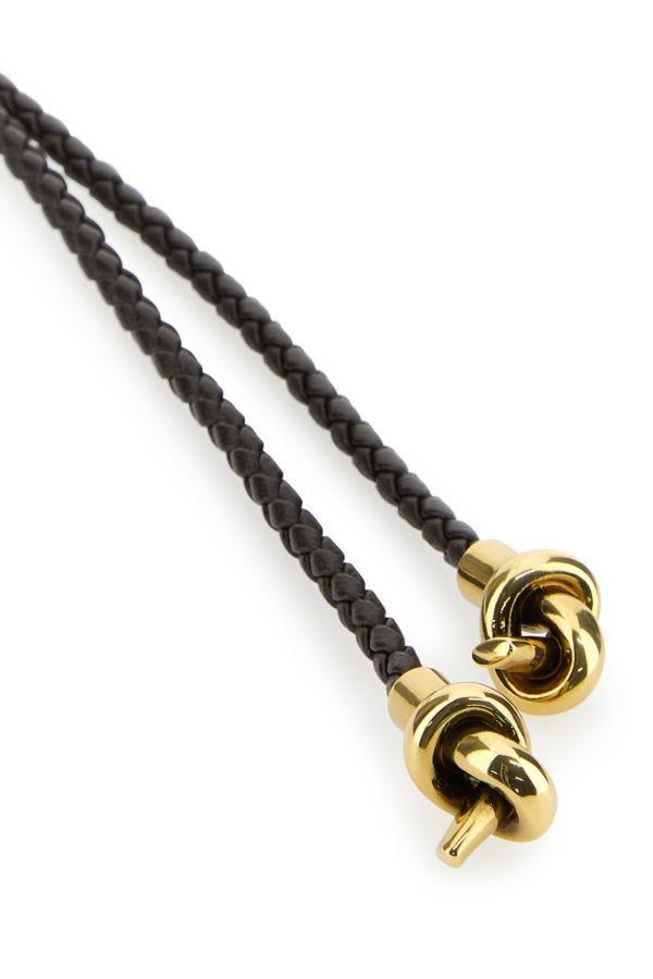 ラムナッパレザーで作られたベルトは、象徴的なイントレチャートモチーフとボーイメタルノットのディテールが特徴です。