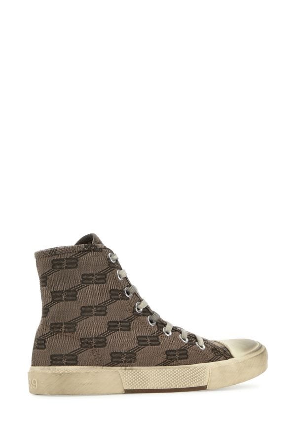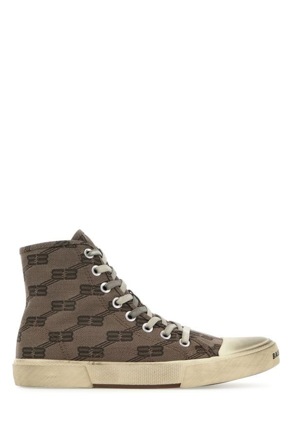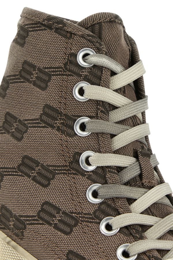 キャンバス地で作られたハイトップスニーカー。表面全体にBBモノグラムの刺繍が施され、つま先にはロゴがプリントされています。