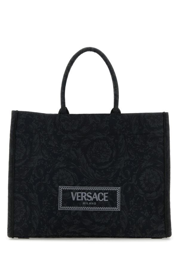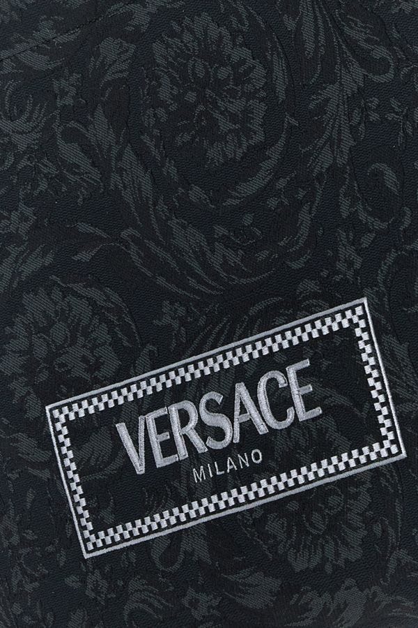 全面にバロック調の刺繍が施され、フロントには90年代のヴィンテージロゴが刺繍された生地で作られたショッピングバッグ。