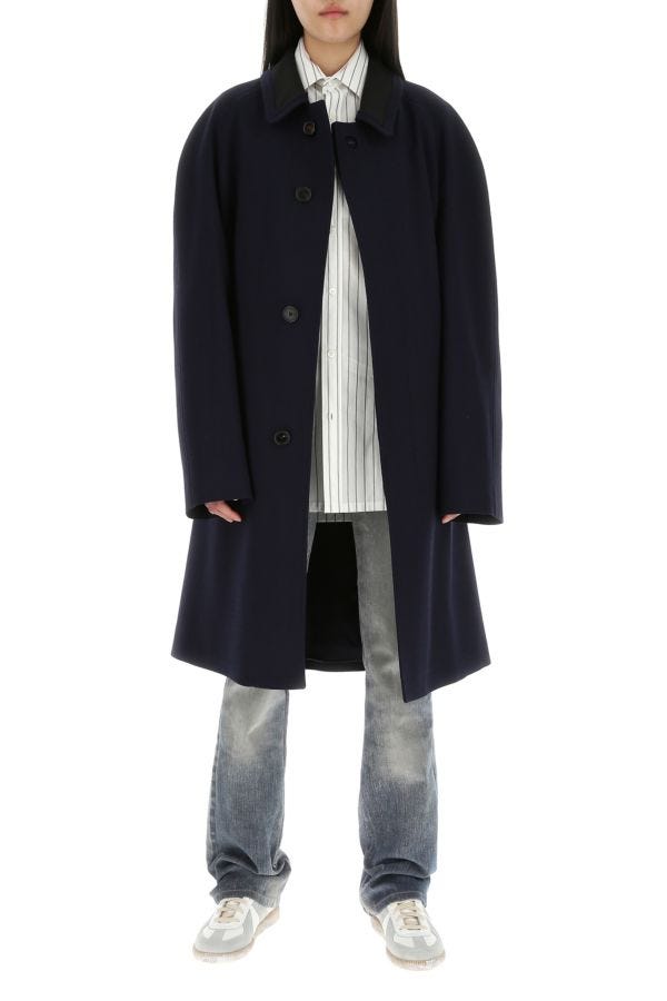 ピュアコットンポプリンで作られたシャツ。表面にストライプの刺繍、背面にステッチが施されています。