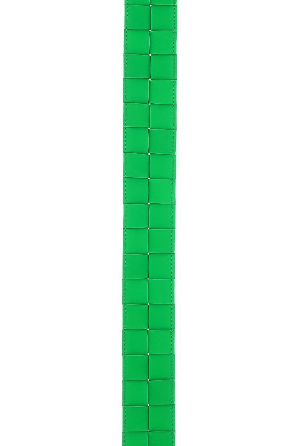 表面全体に象徴的なイントレチャートのモチーフが特徴的なカーフレザーで作られたベルト。