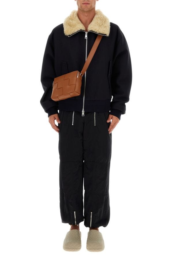 滑らかなカーフレザーで作られたクロスボディバッグ。表面全体に象徴的なイントレチャートのモチーフが特徴的です。