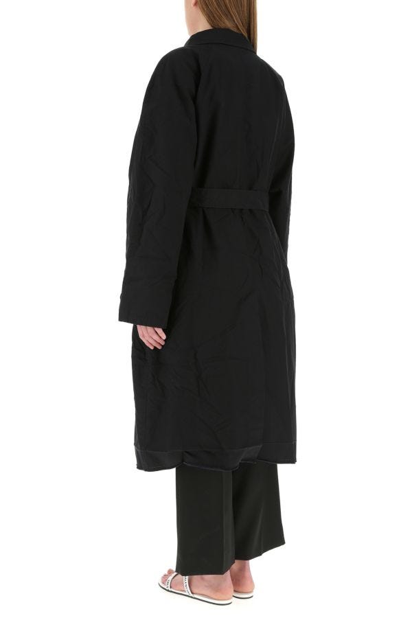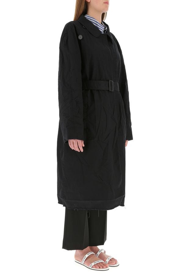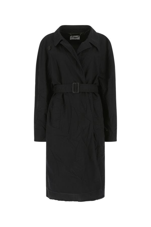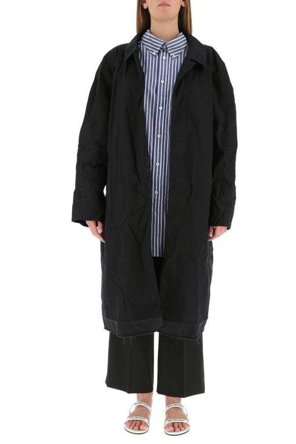 折り目効果のあるピュアコットンで作られたオーバーコート。調節可能で取り外し可能な同系色のファブリックベルトがアクセントになっています。