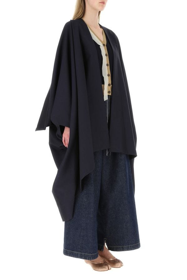 ウールとモヘアで作られたケープ。背面のコントラストステッチが特徴です。