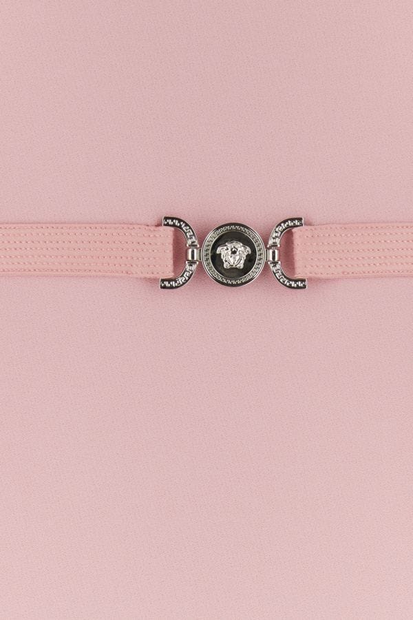 フロントにメタルのメデューサヘッドのディテールが施されたクレープ素材のミニドレス。
