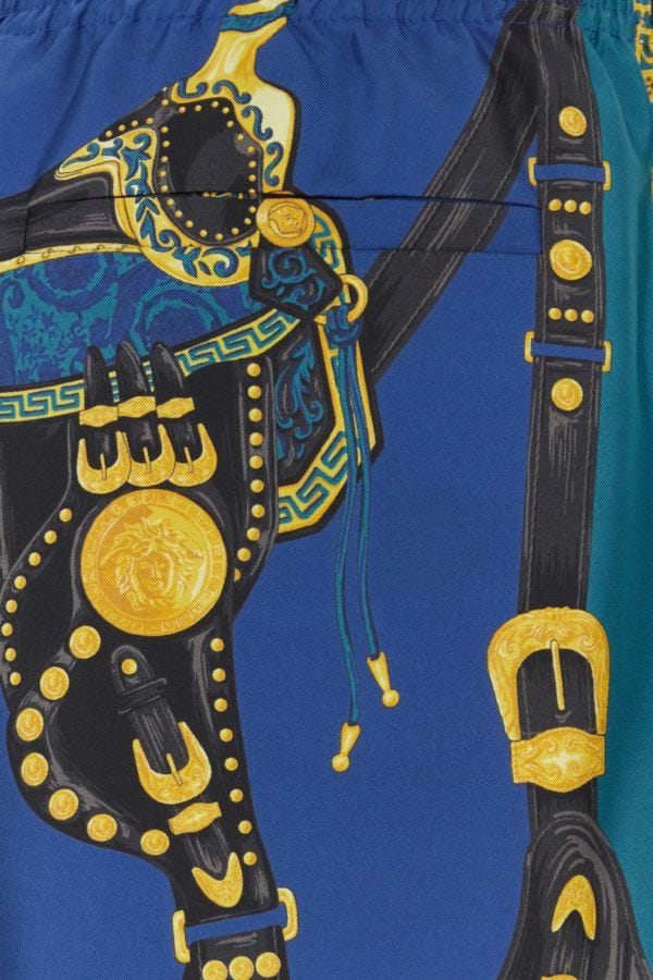全面に独特のプリントが特徴的な純粋なシルクサテンで作られたバミューダショーツ。