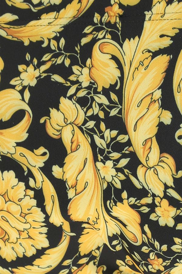 全面にバロッコプリントを施したストレッチポリエステル製のスリップブリーフ。