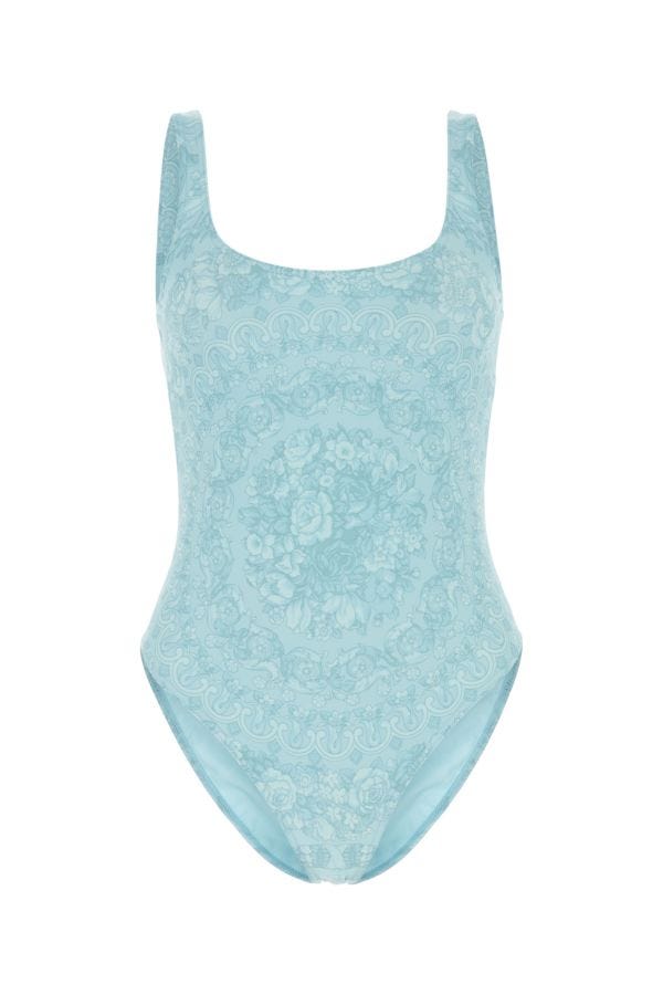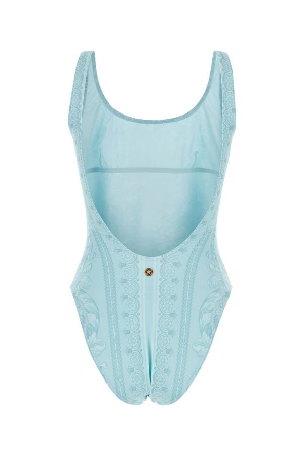 ストレッチナイロンで作られた水着。表面全体にバロッコプリントが施され、背面には象徴的なメタルメデューサヘッドのディテールが施されています。
