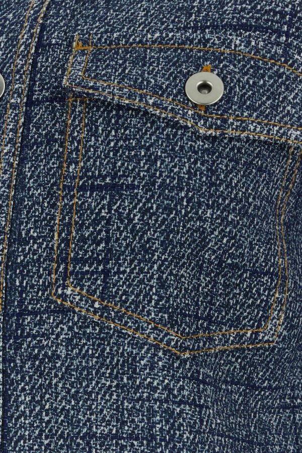 デニムプリントのビスコース混紡で作られたシャツ。短めの尖った襟が特徴です。
