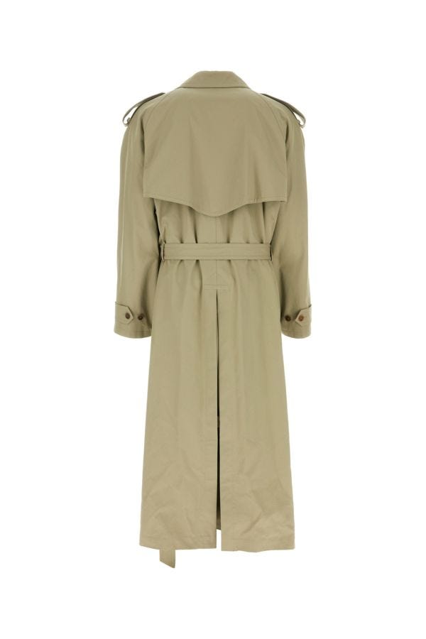 純綿で作られた、ラペルが特徴的なロング丈のトレンチコート。